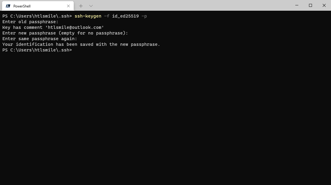 | ssh-keygen -t ed25519 -C "htlsmile@outlook.com"