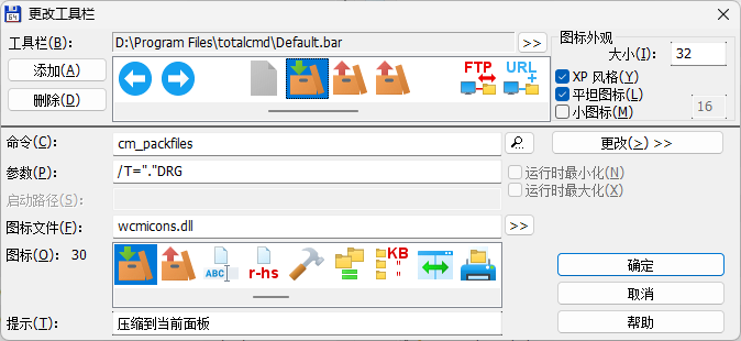 cm_packfiles /T="."DRG wcmicons.dll 压缩到当前面板