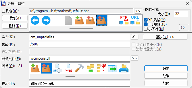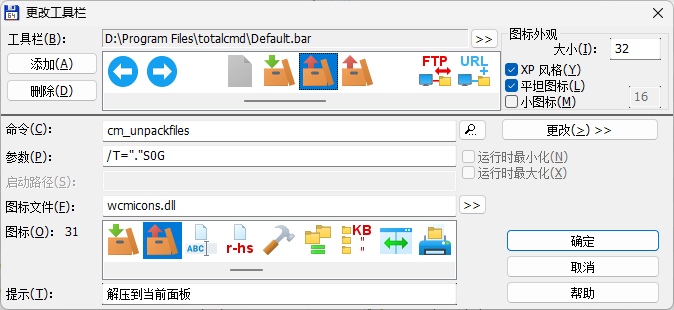 cm_unpackfiles /T="."S0G wcmicons.dll 解压到当前面板